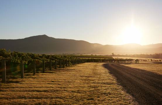 Mount Langi's wijngaarden bij avondlicht